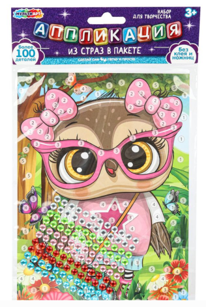 —Аппликация стразами в пакете, 15х21 см, Сова, МУЛЬТИ АРТ, 391977