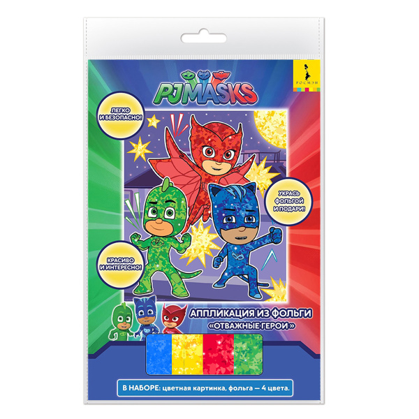 —Аппликация из фольги 'Отважные герои', Росмэн, 20х17 см., 34877