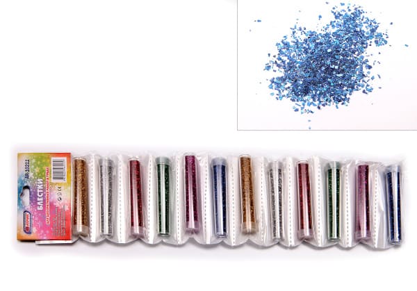 —Декоративные блёстки с золотом и серебром, (12 шт;уп), в тубах европодвес, AR-10211