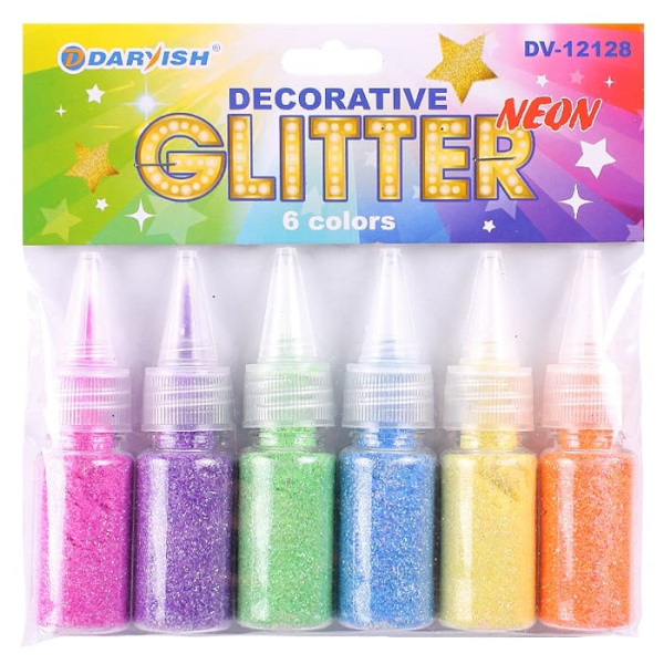 —Декоративные блёстки Darvish' Неон' 6 цв, 6 шт, пластик. колбы с дозатором, европодвес, DV-12128