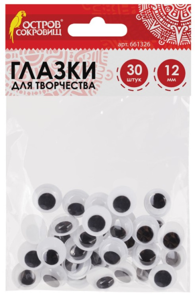 —Глазки для творчества, вращающиеся, черно-белые, 12 мм, 30 шт, 661326