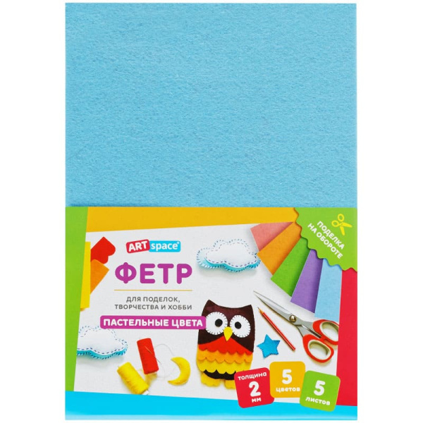 —Фетр ArtSpace, А4, 5л., 5цв., 2мм, пастель Фц5_38034