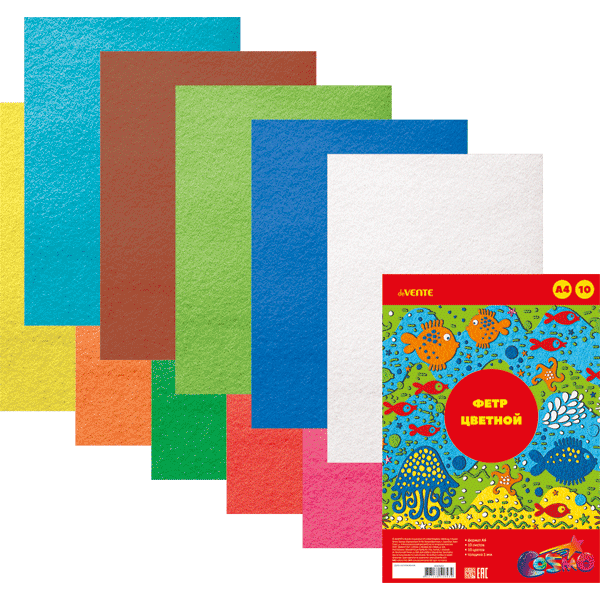 —Фетр цветной A4 'deVENTE. Яркие цвета' 10 цв, 10 л, толщина 1 мм, европодвес, 8040681