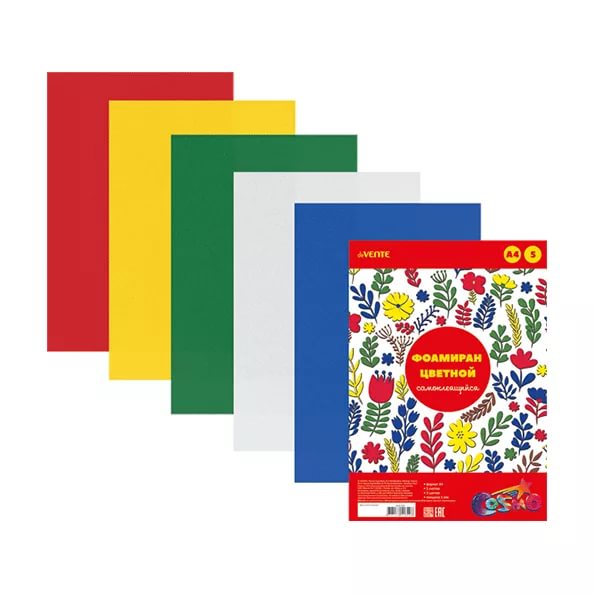 Фоамиран цветной самоклеящийся А4 DeVente 5л., 5цв., 8040799