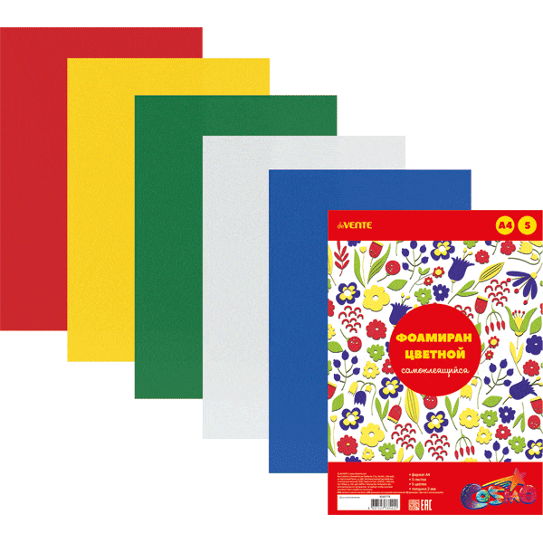 Фоамиран цветной самоклеящийся A4 'deVENTE' 5 цв, 5 л, толщина 2 мм. 8040778