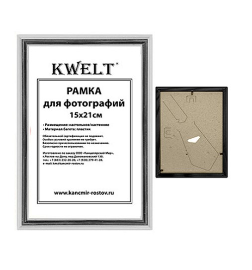 —Фоторамка 'KWELT' пластиковая 15х21 см, серия 1, серебро, стекло, ширина багета 14 мм, 15,21,1С