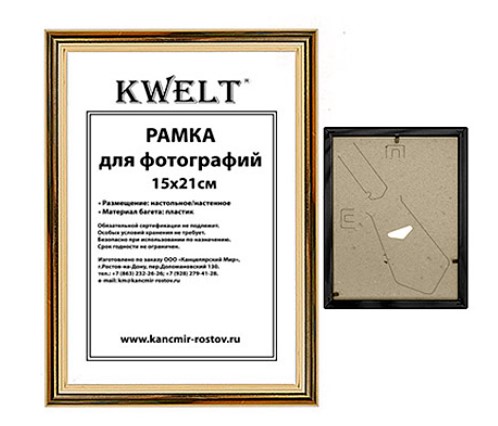 —Фоторамка 'KWELT' пластиковая 15х21 см, серия 1, золото, стекло, ширина багета 14 мм, 15,21,1З