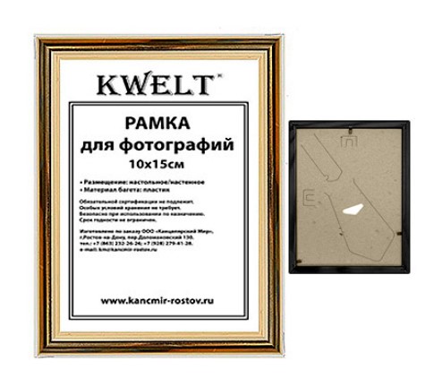 Фоторамка 'KWELT', 10х15 см, пластиковая, серия 1, золото, стекло, 1;10х15;золото