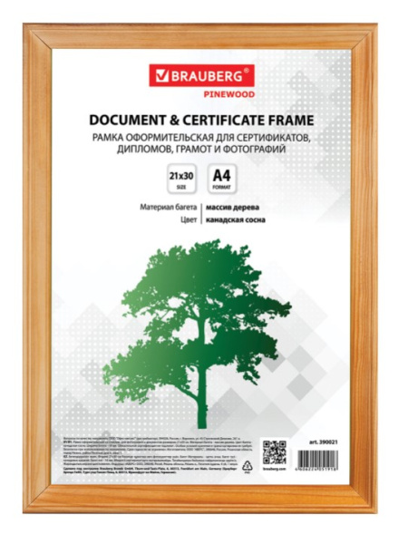 —Рамка деревянная 21х30 см, OfficeSpace, №2, дуб, 296645