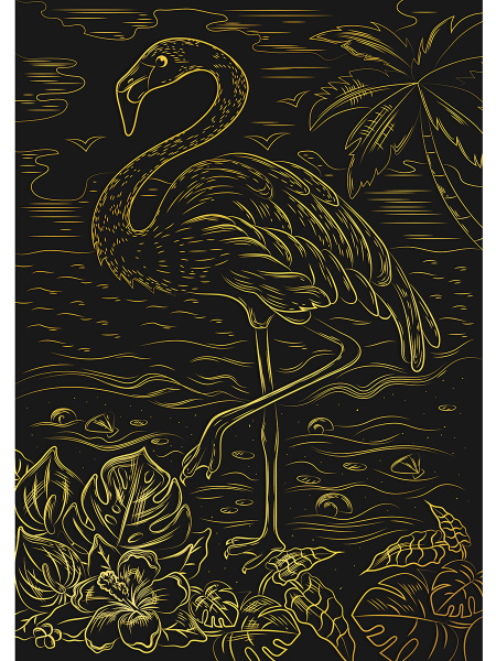 Гравюра А4 металлический эффект золото, 'Чудесный фламинго', пакет с руч., Г-8533