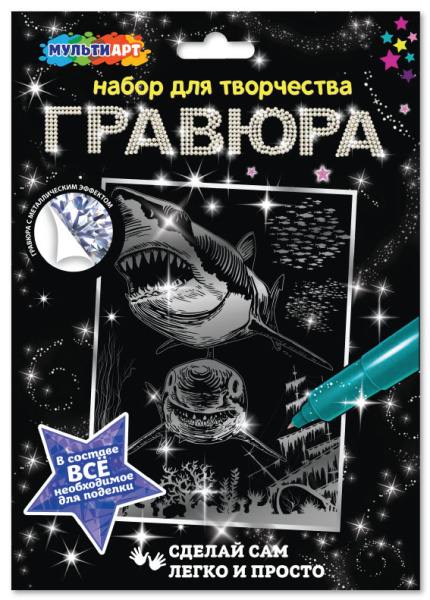 Гравюра серебро, 'Мульти-Арт', 18х24 см, дизайн ассорти, SCRATCH;18х23