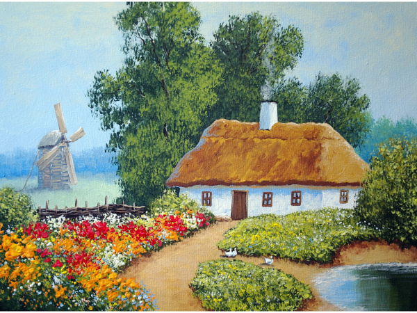 Алмазная мозаика 30х40 см. с полн. заполн. (30цв.) 'Домик на хуторе', НД-0544