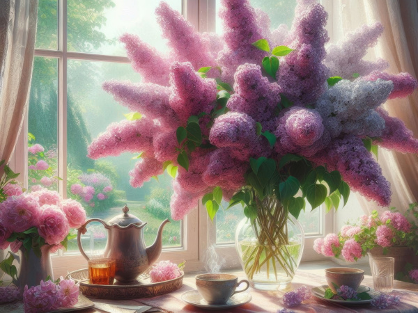 —Алмазная мозайка (клас) 30х40 см, с подр, Ветви сирени, НД-8910