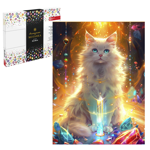 —Алмазная мозайка 30х40 см, Кот и самоцветы, Phoenix plus, 68637