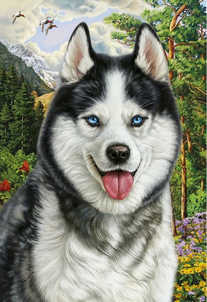 —Алмазная мозайка 'Портрет хаски' (класс.) 22х32 см, с подрамником 24 цвета, НД-8554