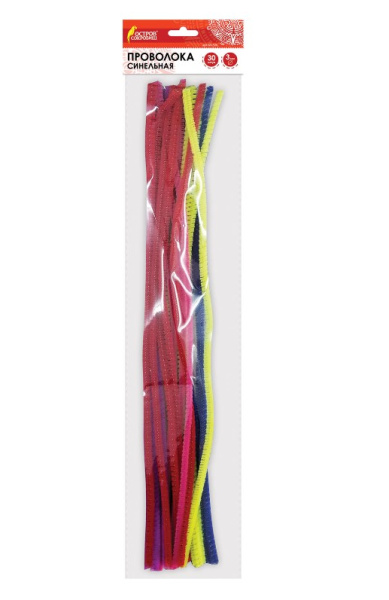 —Проволока синельная для творчества 'Пушистая', 6 цв, 30 шт, 0,3х30 см, ОСТРОВ СОКРОВИЩ, 661520