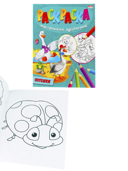 Раскраска А4 ПОТЕШКИ (Р-5099) 8л,на скреп,обл.-мелов.бумага,блок - офсет