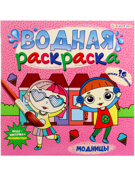 —ВОДНАЯ РАСКРАСКА 'МОДНИЦЫ '(Р-5253) 225х225, 16л+обл, обл.мел, блок офс, печать 4+0, скрепка