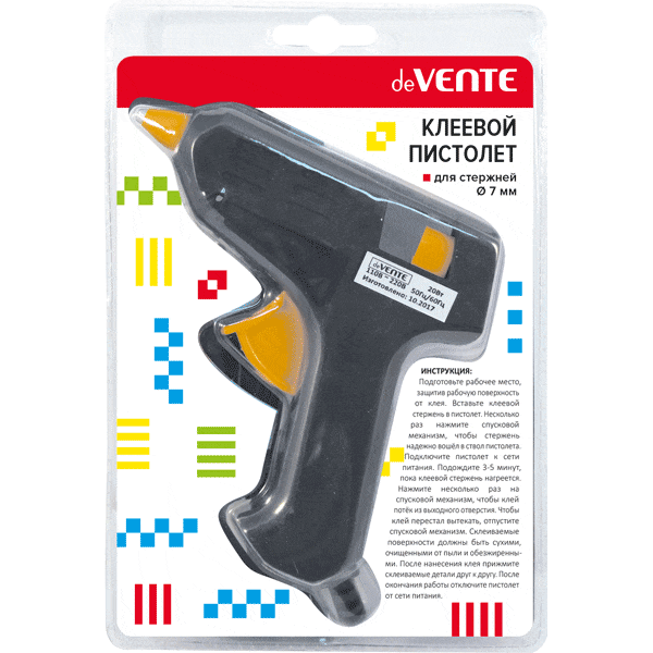 Клеевой пистолет 'deVENTE' 20 Вт, для стержня Ø 7 мм, 2 стержня в комплекте, 4181500