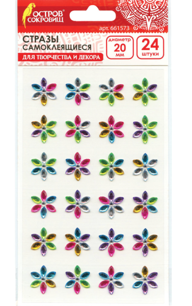 —Стразы самоклеящиеся 'Сердечки', 20 мм , 24 шт , ассорти, 661573